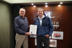 New Hampshire Governor Chris Sununu holds a proclamation declaring June as Amateur Radio Month with Section Manager of the ARRL New Hampshire Section Pete Stohrer, W1FEA. [Barron Clogston, photo.]