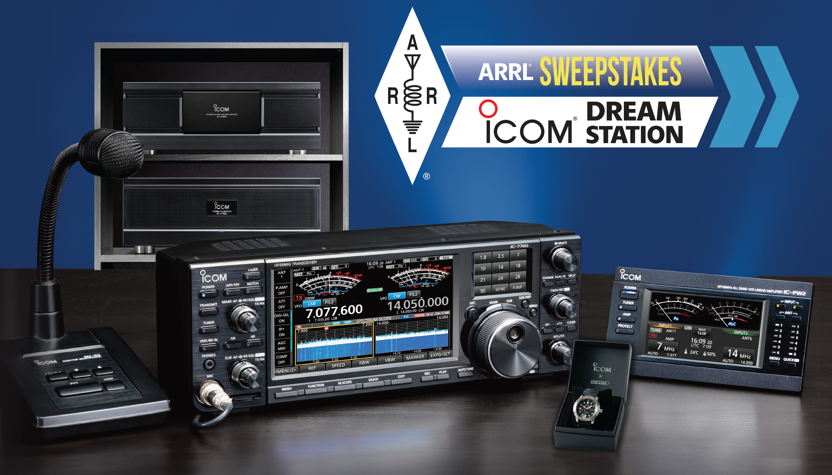 • IC-7760 HF/50 MHz 200 W Transceiver – Icom 60th Anniversary Signature Edition, which also includes a limited-edition Seiko watch commemorating Icom’s anniversary