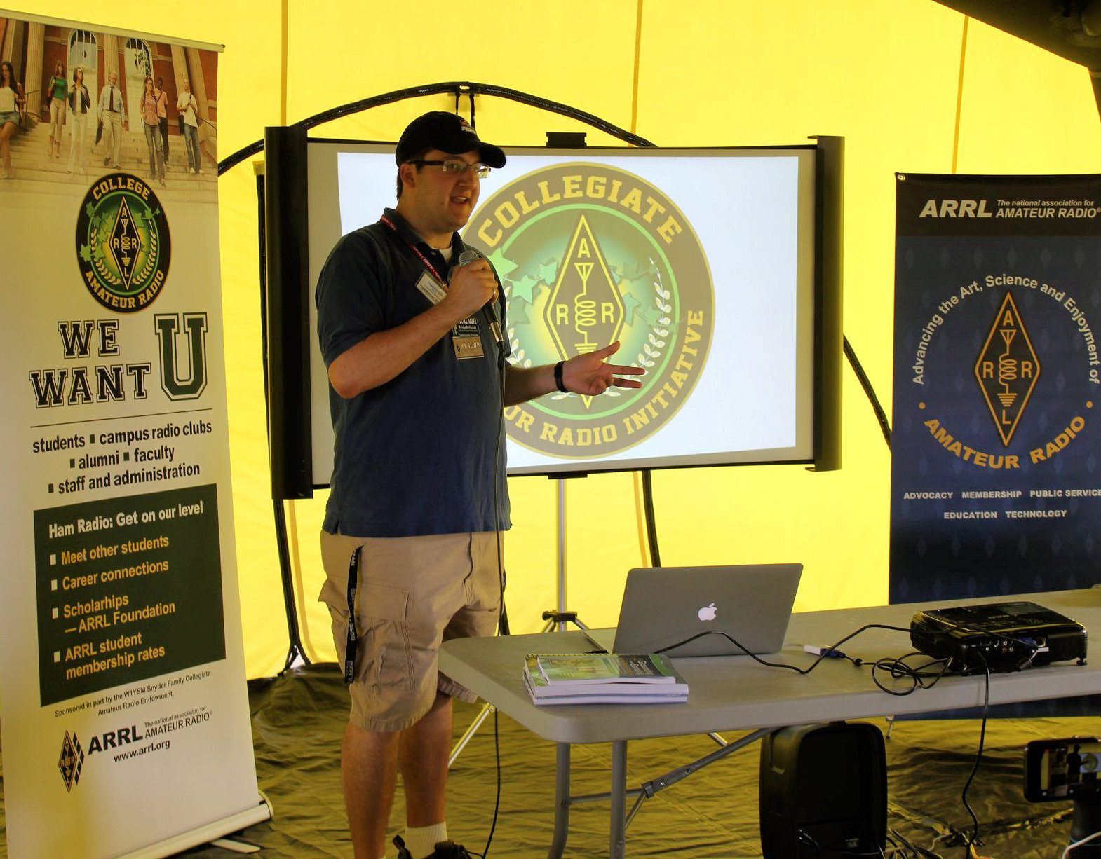 A display featuring the ARRL Collegiate Amateur Radio Initiative (CARI) included college pennants contributed by a handful of university radio clubs. Andy Milluzzi, KK4LWR, a Systems Engineer at Walt Disney Parks and Resorts and a recent doctoral program graduate of the University of Florida, led a College Amateur Radio forum. He introduced many opportunities to help foster interest in ham radio among college students and campus radio clubs. Topics Milluzzi and other participants covered included ARRL Scholarships, sources of funding for campus radio clubs, and networking students with alumni and professionals.
