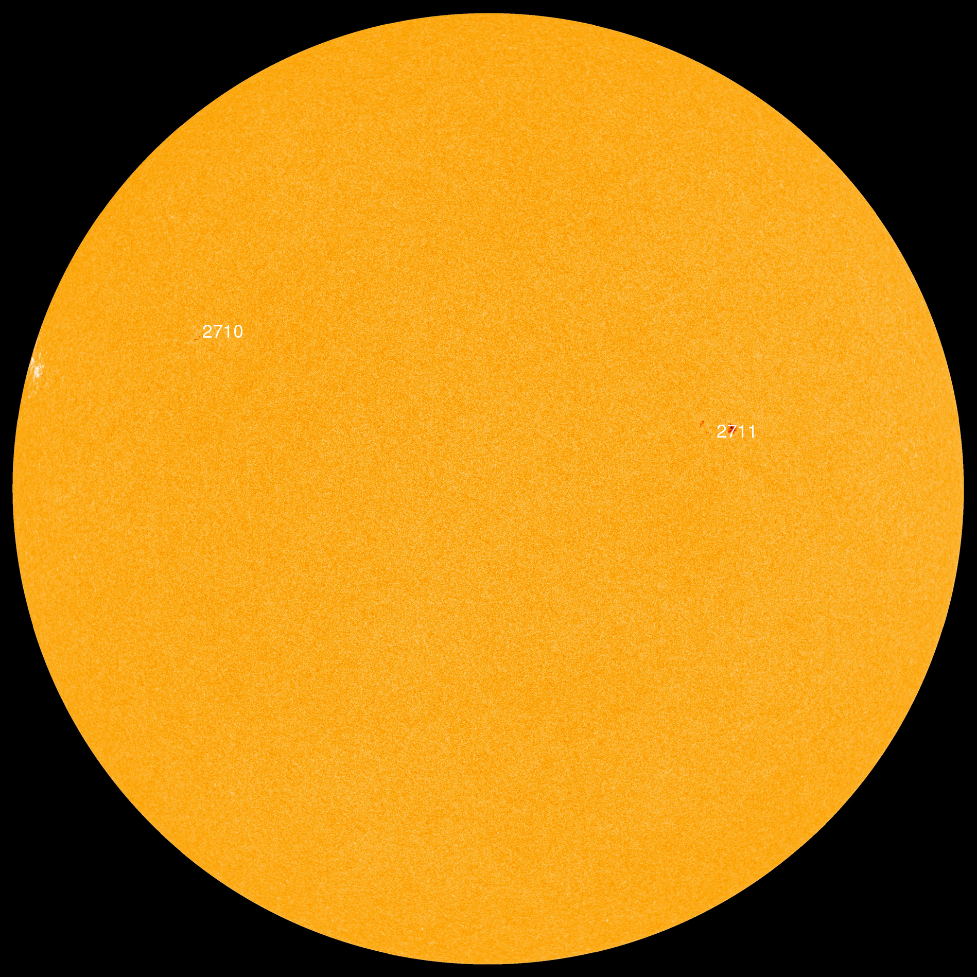 Currently sunspot group 2710 and 2711 are active (2711 is growing), and 2712 is about to emerge beyond the horizon. On May 23 50 one-millionths of the visible solar surface was covered by sunspots. April 24-25 was the last time this level of activity was seen. On April 21-22 the sunspot area numbers were 120 and 130.